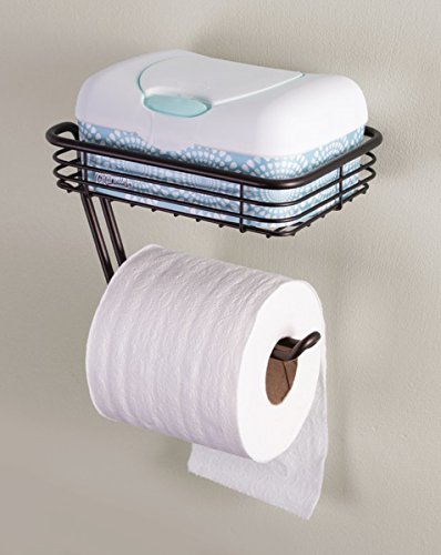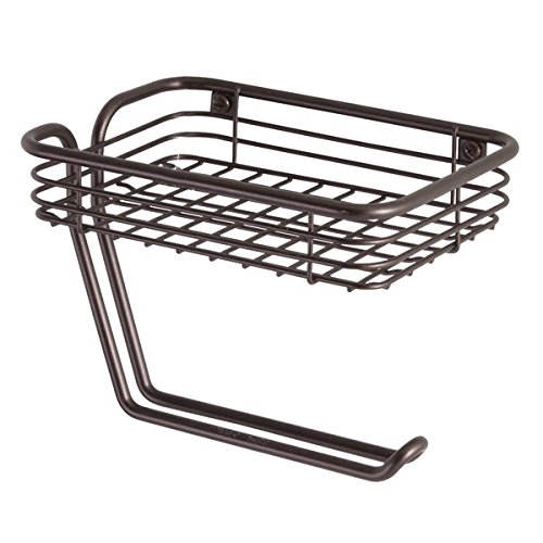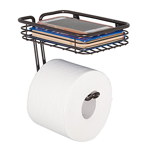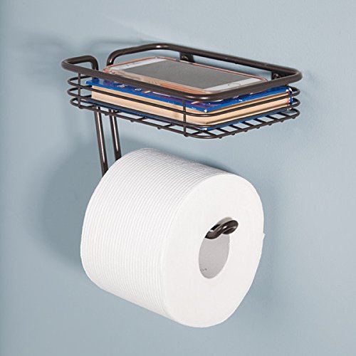 mDesign Toilet Paper Holder with Shelf for Bathroom - Wall Mount, Bronze