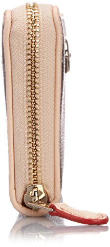 -. Feature : Embossed signature canvas with leather trim / Twelve credit card and multifunction pockets / Full-length bill compartments / Zip coin pocket / Zip closure. 7 3/4" (L) x 4" (H)
