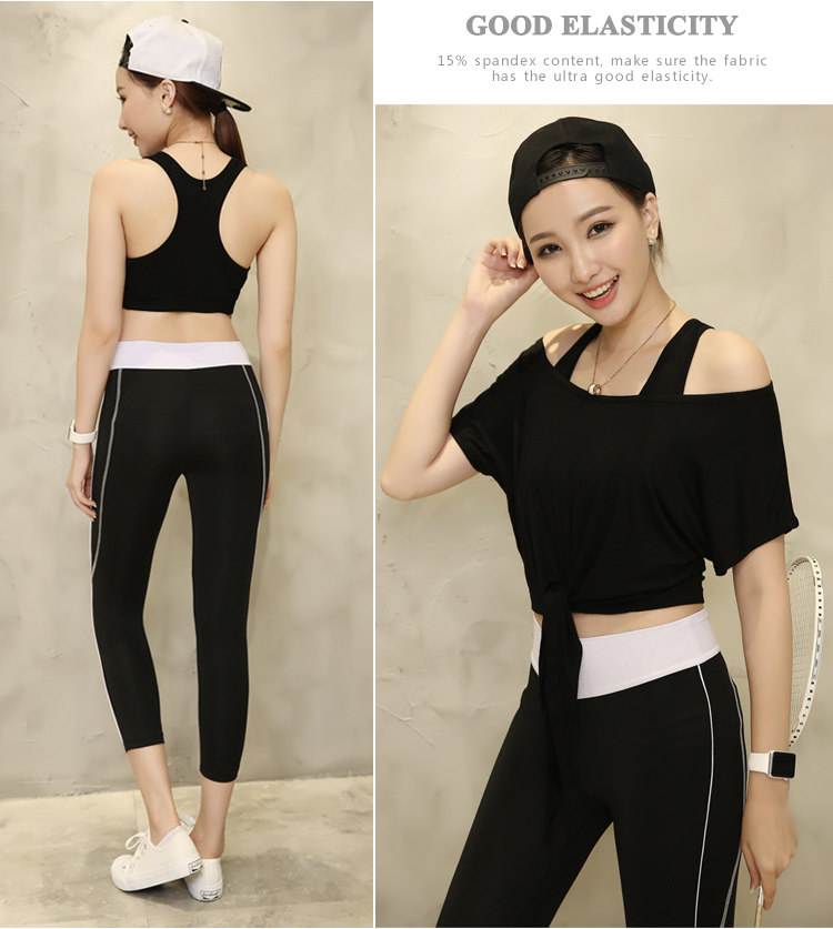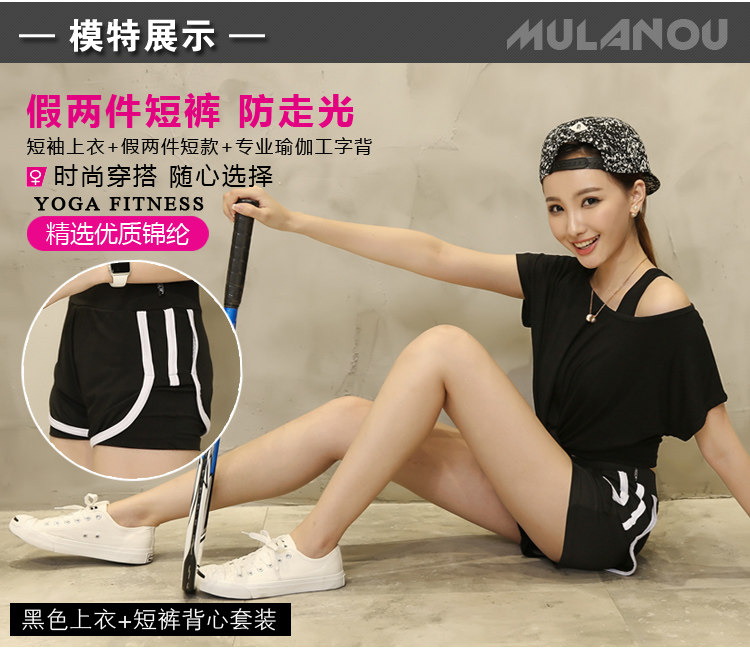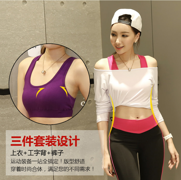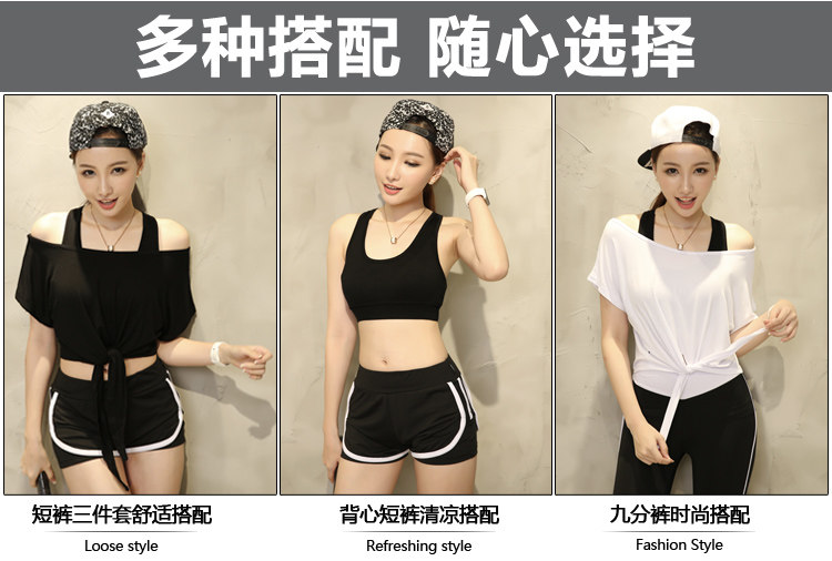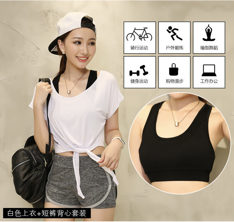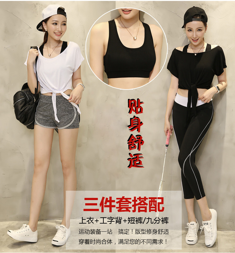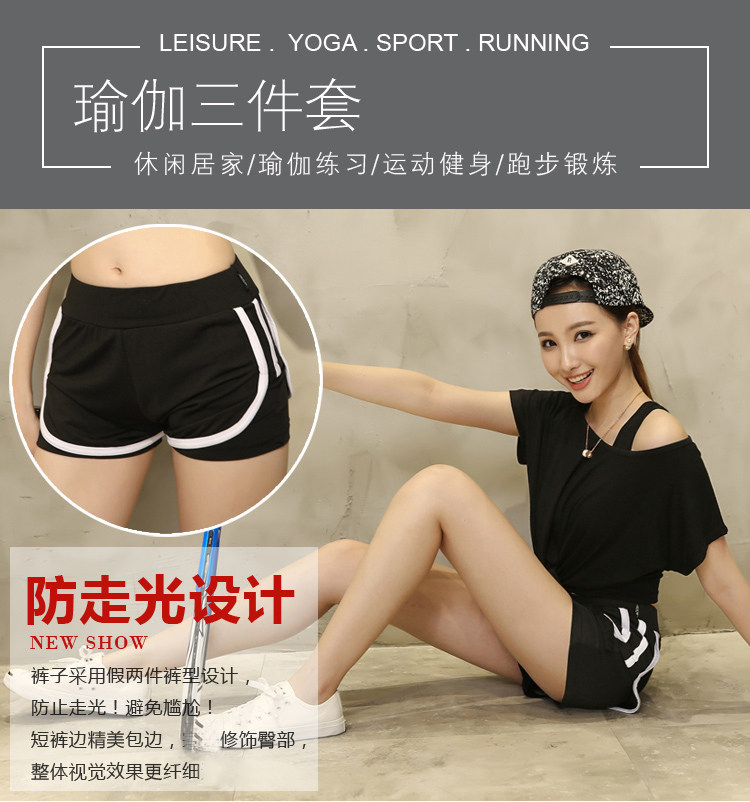 春夏季瑜伽服套装健身服女三件套速干衣健身房跑步运动服显瘦短裤