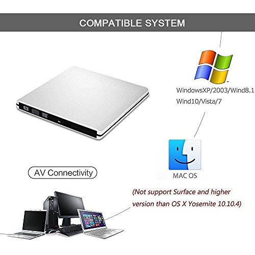 - Support Compact Disc- It supports read CD,VCD,SVCD,CD-R,CD-RW,DVD-R/DVD-RW and burn CD-RW,CD+RW,DVD-RW,DVD+RW etc. With this slim DVD burner, you can watch DVD movies, listen CD music, copy music, pictures, movies to a CD/DVD, install software.