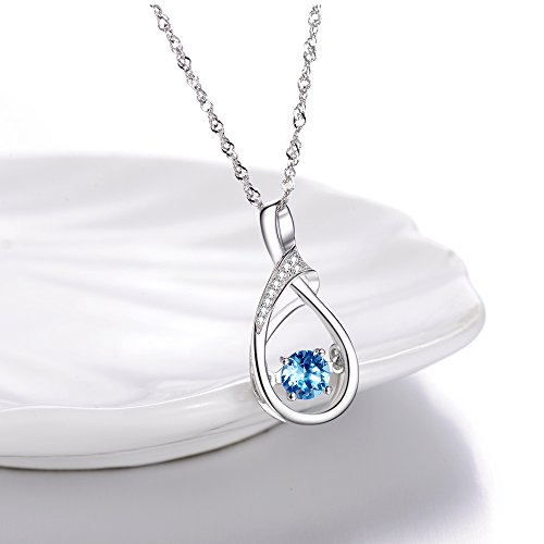 ♥ HIGH QUALITY FINE JEWELRY♥ Elegant Infinity Design with Sky Blue Topaz Swarovski in center and diamond accent cubic zirconia on side Means " You are the only one in My Heart", metal made of 18K White Gold over Sterling Silver pendant with 18"+2" chain.