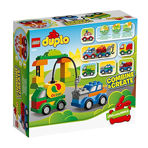 -. Feature : Enthält 3 Fahrgestelle, L.E.G.O® DUPLO® Steine mit Fenster-, Ampel- und Tankstellensymbolaufdruck, Schlauch, Motor, Kran, LKW-Ladefläche, ein Spoilerelement und weitere DUPLO Steine Erschaffe mit einfachen Handgriffen die coolsten Fahrzeuge! Schnelle Erfolgserlebnisse beim Bauen dank dem Kombinieren & Kreieren Konzept! Enthält ein Poster mit Bauideen DUPLO Produkte sind bunt, geeignet für kleine Hände und machen Spaß