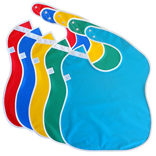 Toppy Toddler LARGE Waterproof Feeding Bibs. Better Snap Buttons. Bib Easily Wipes Clean! Gift Set Sizes for Girls and Boys, Ages 18 - 48 months (5-Pack,...