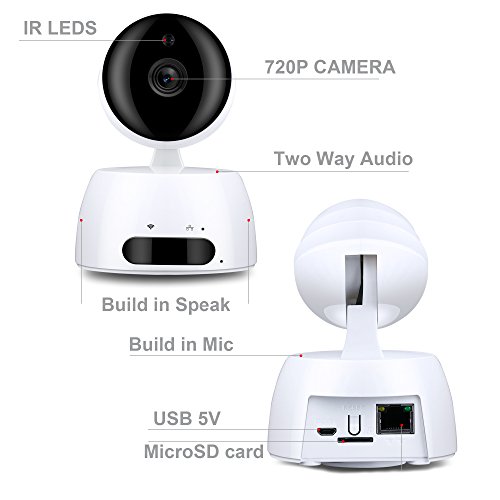 Two Way Audio: Built in Microphone let you can talk to your family by your phone and pad just like a video chat.So you also can use this camera as baby monitor , elder care even watching your pet when you have to leaving home. Adjustable IR night vision- Let you can see what's happening in low light conditions with black and white automatic infrared lights.Help you watching your children at night.