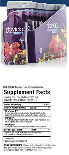 Each convenient, single-serve packet contains a full serving of 4Life Transfer Factor Tri-Factor Formula, and the proven power of RioVida’s antioxidant-rich juice blend