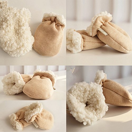 Product Description Material:Cashmere Color:brown Size:one size,fit 0-4 Month- Features: Soft and comfortable, protect your baby from scratches, germs, without worrying about harming their hand fingers 0