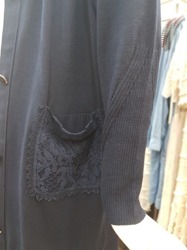 모 혼방의 가디건으로 부드러운 착용감과 디테일이 들어간 레이스 포켓, 소매 시보리로 멋스러운 착용이 가능합니다.