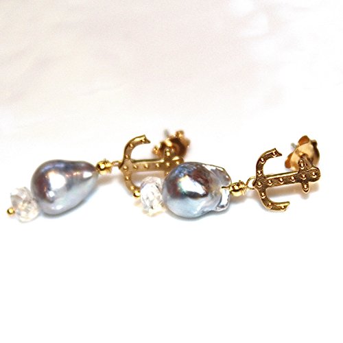 -. Title : Grey Pearl Earrings Moonstone Earrings Moonstone Jewelry Anchor Earrings Refuse To Sink Akoya Pearl Earrings Nautical Jewelry Anchor Jewelry