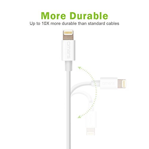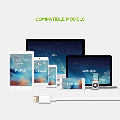 [Apple MFI Certified] [iOS9 Compatible] Omars [2 Pack] 4ft / 1.2m Lightning 8pin to USB SYNC Cable Charger Cord for iPhone 5, 5s, 5c, 6, 6 Plus, 6s, 6s Plus, iPod touch 5, 6, iPod nano 7, iPad Mini 1, 2, 3, 4, iPad 4, Air, Air 2, iPad Pro (White)