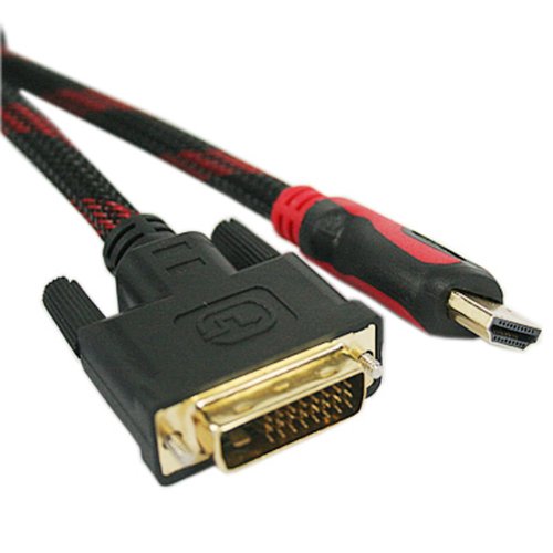 HDE Gold Plated High Speed HDMI TO DVI-D 24+1 Adapter Cable with Braided Fabric Jacket - 5ft