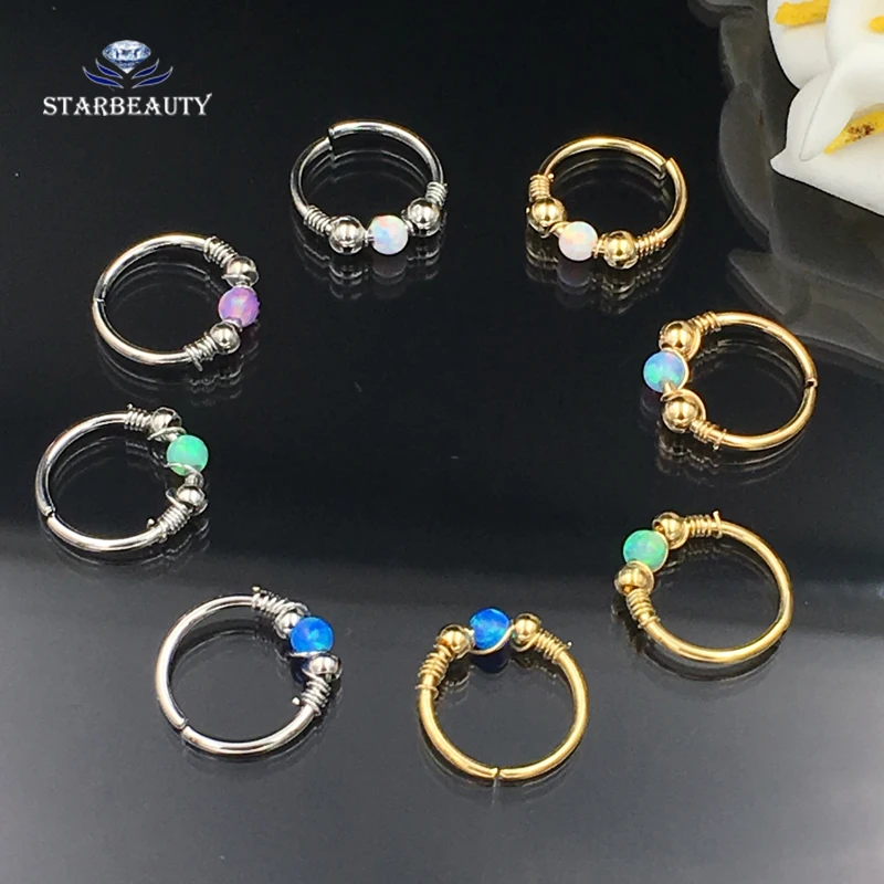Color:8 Colors. Silver and golden Septum OPAL Nose Rings