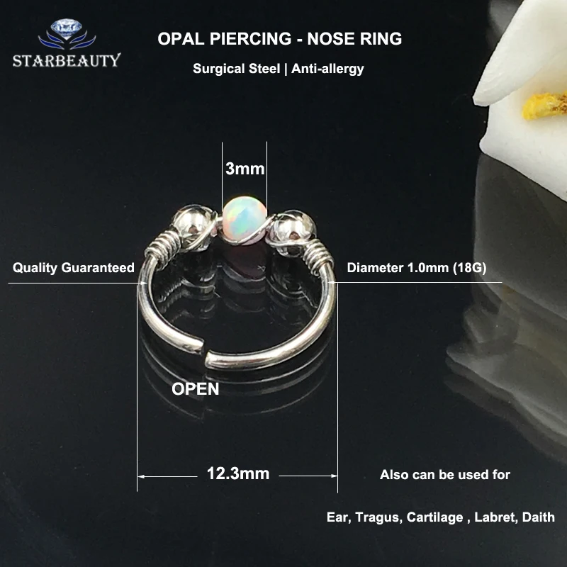 Material:Surgical steel and OPAL nose ring