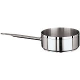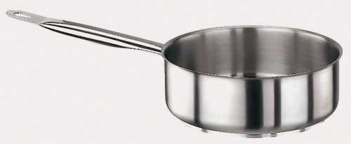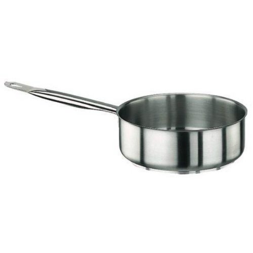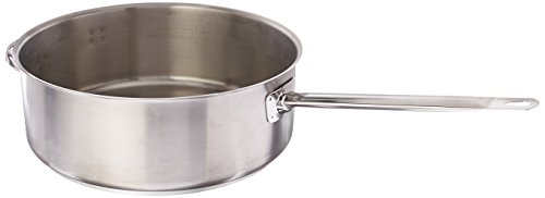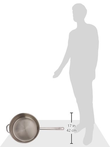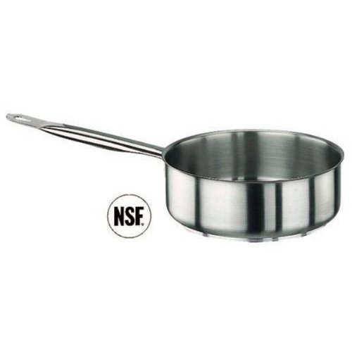The 13 3/4 quart stainless steel sauté pan is short with straight sides and has a high handle suited to lightly and quickly fry food. The 3” depth keeps food in the pan, so that it may be shaken and flipped constantly. It has a triple layer bottom and is induction ready.Feature
