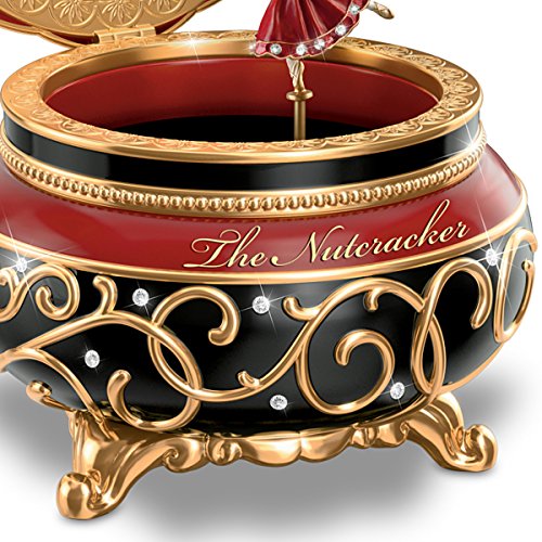Feature : Bring the enchantment of a timeless holiday story into your home with the Clara And The Nutcracker Music Box, only from The Bradford Exchange / Handcrafted of Heirloom Porcelain® and painted by hand in radiant golden, ruby red and onyx black tones / Russian style art adds to the beauty of this music box, capturing a colorful and festive scene from The Nutcracker inside the lid / An exquisite Christmas treasure, this music box is lavished with raised-relief sculpted scrollwork gleaming in lavish 22K gold accents and 40 sparkling simulated jewels / At the turn of a key, a fully sculpted Clara ballerina figure gracefully twirls as the melody of "The Dance of the Sugar plum Fairy" plays
