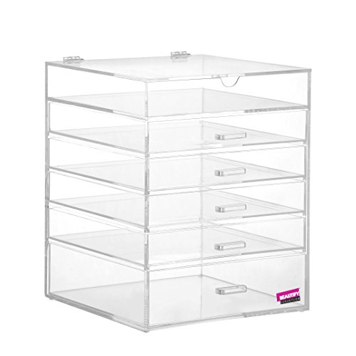 - Title : Beautify Large 6 Tier Clear Acrylic Cosmetic Makeup Cube Organizer With 5 Drawers & Removable Divider