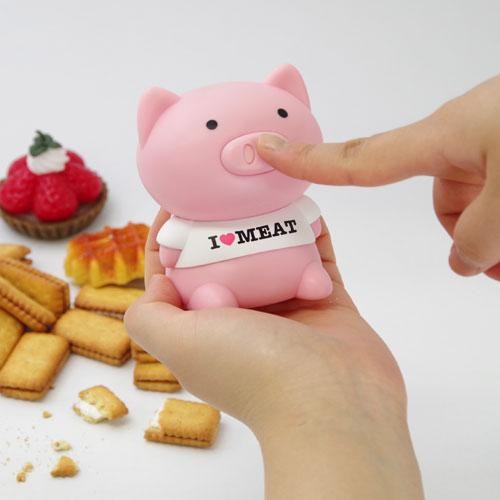 | 食べ物の誘惑に負けそうになった時、鼻のボタンを押します。ブーブーが食べたくなくなるような言葉をおしゃべり!!また、早食い防止機能付で、15秒~90秒に1回のペースで早食いを防止したり食事に集中できるような言葉を自動でおしゃべりします!! |