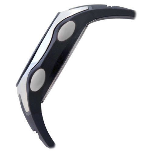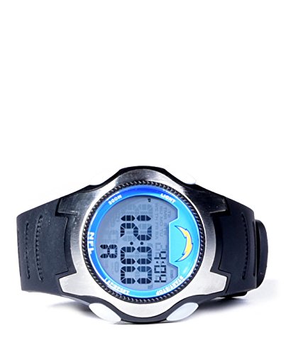 -. Feature : Solid 5-feature liquid crystal display (lcd) digital movement with easy set function-time (hour, minute, second), calendar (month, date, year), 1/100 chronograph stop watch, dual alarm, el backlight,