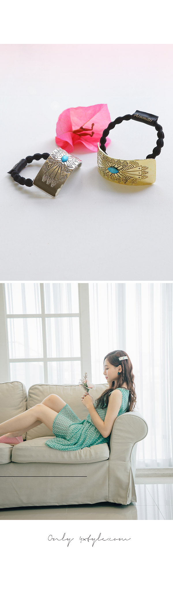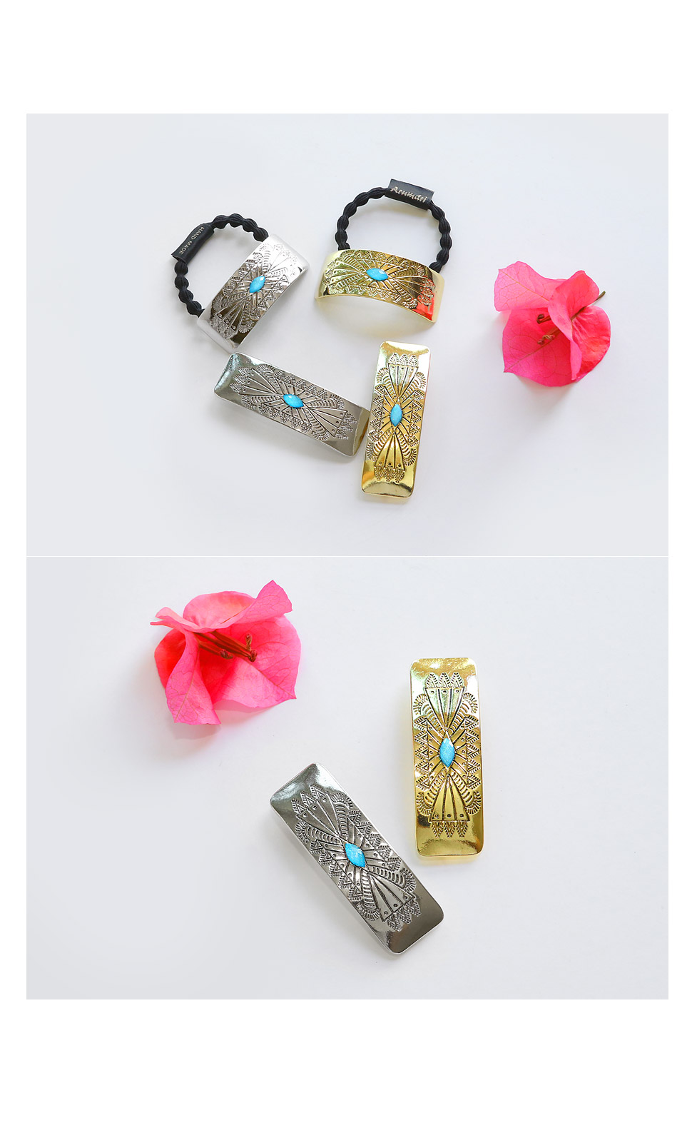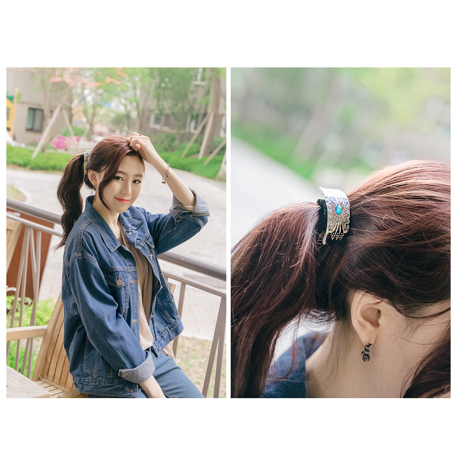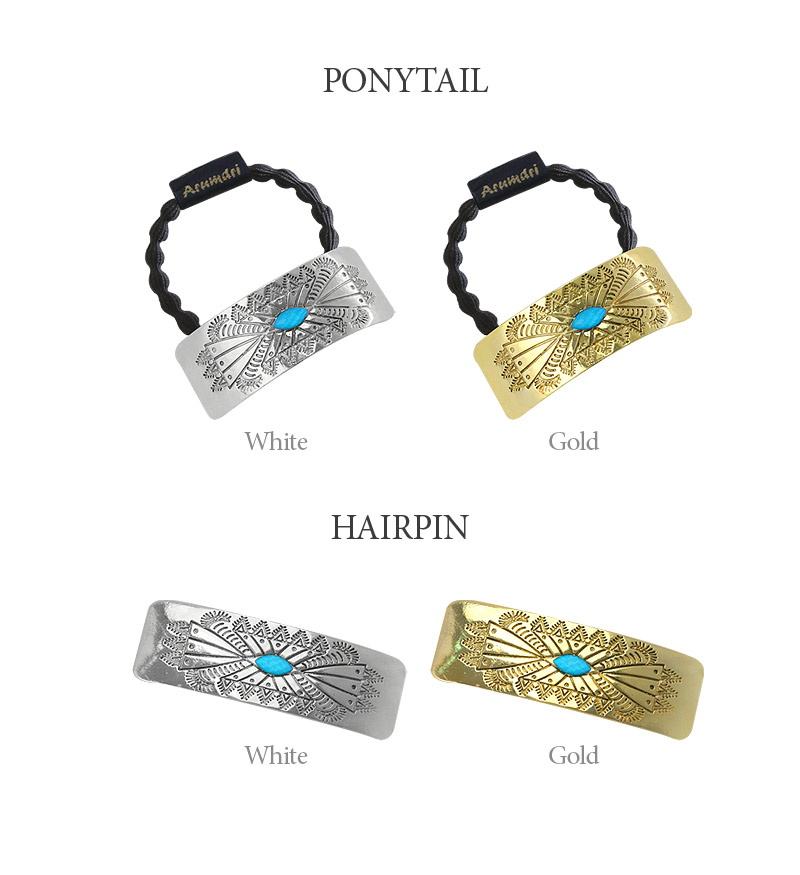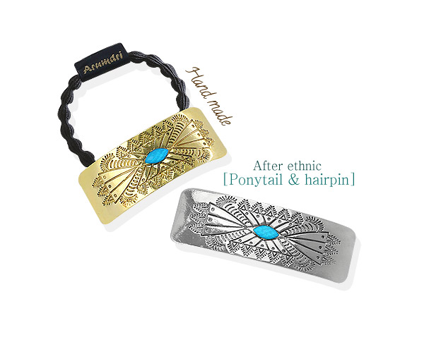 에스닉한 분위기를 연출할 수 있는 헤어핀 & 포니테일 제품.