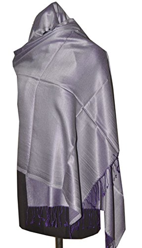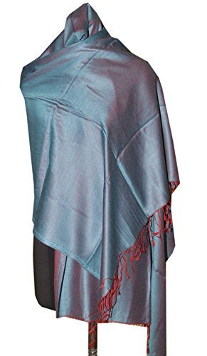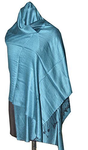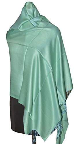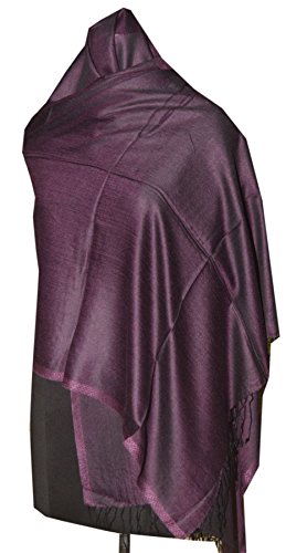 New Ladies Plain Shiny Reversible Pashmina Shawl Scarf Cashmere Fring Hem Silk Long Stole - Product Type : Reversible Plain Pashmina Mix Shawl
