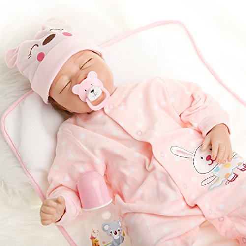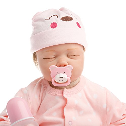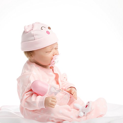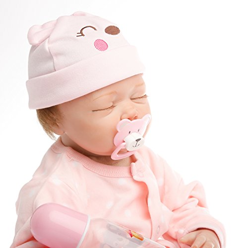 22inch 55cm from head to toe, with GentleTouch vinyl head and limbs and weighted body for a real baby feel.The doll with Magnet pacifier.