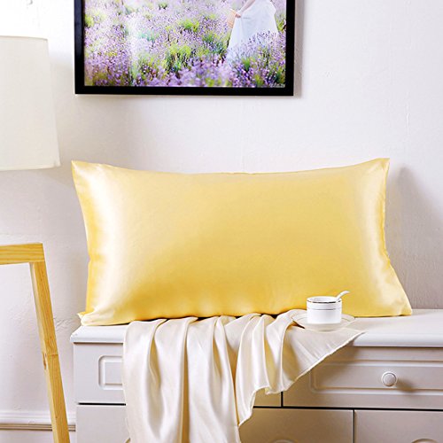 100 percent Mulberry Silk Pillowcase 19 Momme 400 Thread Count Pillow Case Cover Queen Size for Hair & Skin Beauty (Light Yellow)