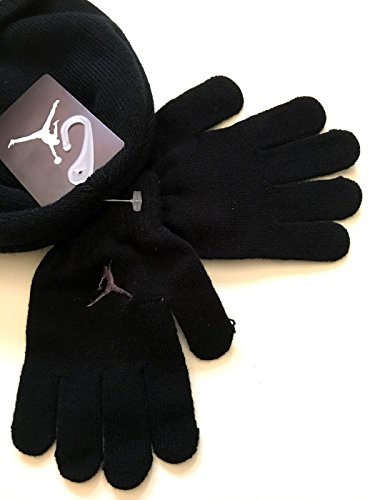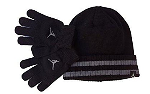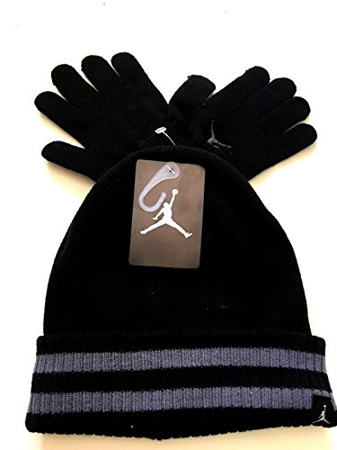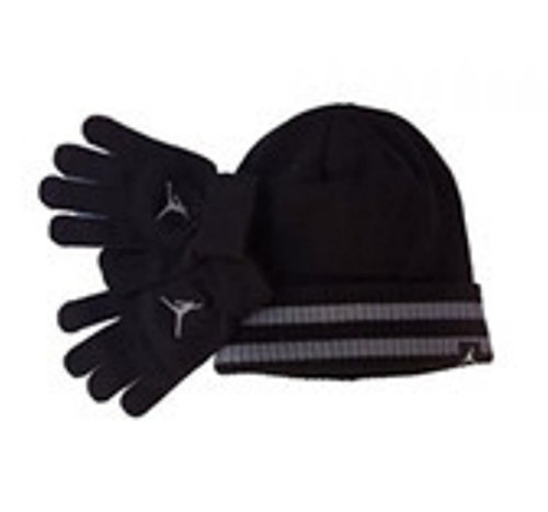 (NIKE)/Accessories/Cold Weather Accessories/DIRECT FROM USA/NIKE Jordan Large Cuff Snow Hat Ski Beanie Winter Cap and Gloves Set (Black/Wolf Gray) YOUTH 8-20