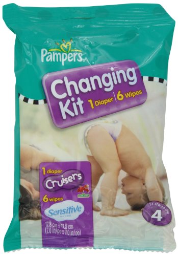 -. Binding : Health and Beauty -. Brand : Pampers -. EAN : 0814521010741 -. Feature : 3-way fit gives babies our best fit ever so they have the freedom to play their way / Pampers cruisers diapers offer up to 12 hours of leakage protection / Now with the quilted softness of saddlers (available in sizes 3 and 4) / New sesame street graphics feature your favorite characters on every diaper -. IsAdultProduct : 0 -. Label : Pampers -. Manufacturer : Pampers -. Model : -3728 -. MPN : 1074 -. NumberOfItems : 10 -. PackageQuantity : 10 -. PartNumber : 1074 -. ProductGroup : Health and Beauty -. ProductTypeName : HEALTH_PERSONAL_CARE -. PublicationDate : 2013-08-30 -. Publisher : Pampers -. ReleaseDate : 2013-08-27 -. Size : 4 -. Studio : Pampers -. Title : Pampers Cruisers Changing Kit, Size 4, Unscented, (Pack of 10) -. UPC : 814521010741