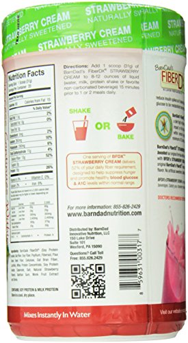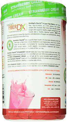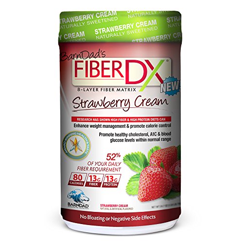 Barn dad's fiber-DX strawberry cream (13g of fiber and 13g of protein per serving) takes your daily fiber routine to the next level, we've boosted our original formula with over 25 percent more fiber and over 85 percent more protein per serving. Plus, with bed's strawberry cream, you'll get all the same incredible health benefits of our original proprietary fiber matrix mixed with the irresistible delight of a smooth and creamy strawberry flavor. It also contains an amped protein blend (whey, soy and casein) to help speed and improve lean muscle recovery. No artificial sweeteners, bloating or negative side effects. Barn dad's fiber-DX is a 100 percent natural, time release, soluble and insoluble fiber matrix that naturally reduces hunger and supports healthy weight management, lean muscle and a healthy digestive system. Originally developed in Germany, where it was used to successfully treat diabetic and obese patients, bed reduces hunger and slows the digestion and absorption of sugars and carbohydrates. This helps reduce insulin spikes and allows glucose to be metabolized more effectively. Barn dad's fiber-DX also supports heart health. It's long been clinically proven that a diet high in fiber helps reduce cholesterol and triglycerides, which has a positive impact on the body's mechanisms for regulating healthy cholesterol production. Health experts recommend a balanced diet include a minimum of 25 and up to 50 grams of fiber per day.Feature