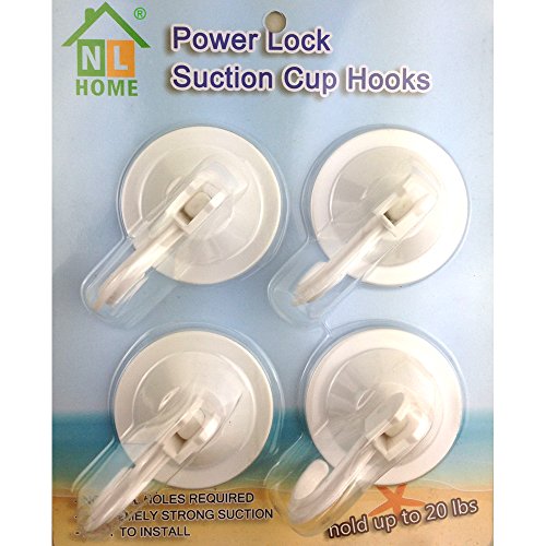 4-Pack Power Lock Suction Cup Hooks, White, by NL Home