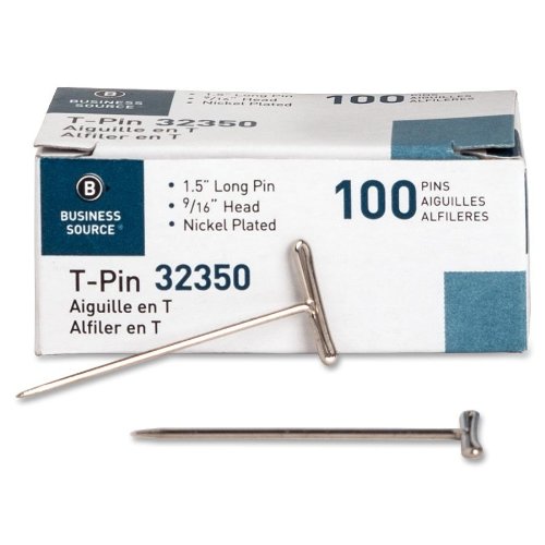 Business Source T-Pins, 1-1/2-Inch, Silver, 100/Box
