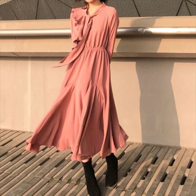 この1枚でコーデが決まる☆ふわりと広がるフレアスカートがエレガントな長袖ワンピースのご紹介です。