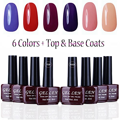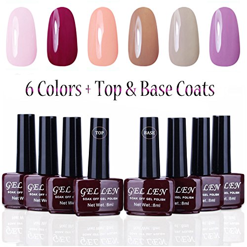 PACKAGE: 6 Pcs gel polish + 1pc top coat + 1pc base coat. Capacity: 8ml/bottle