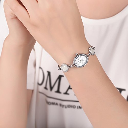♥One Watch for Double Use:The watch is not only for time, but also for decorating your wrist , there are size bracelet you can choose; exquisite and compact jewelry buckle, smooth shell dial,make watch more romantic style.