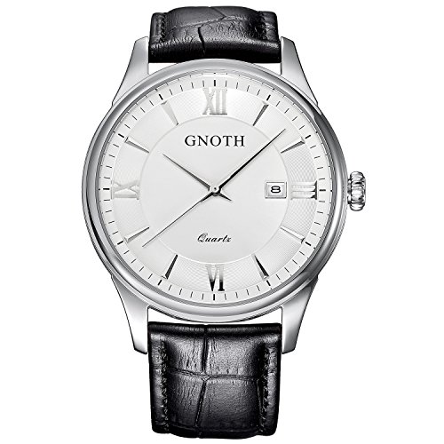 -. Title : GNOTH Men's Classic Casual Analog Quartz Wrist Watch with Durable Black Genuine Leather Band and Date