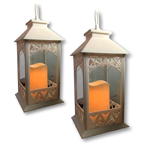 White Lanterns - Set of 2 Bright White Decorative Lanterns with a LED Candle and 5 Hour Timer - Indoor/Outdoor Lantern - Candle Lantern