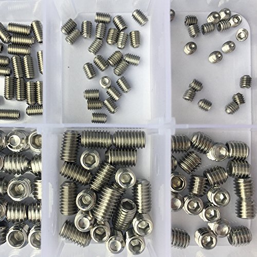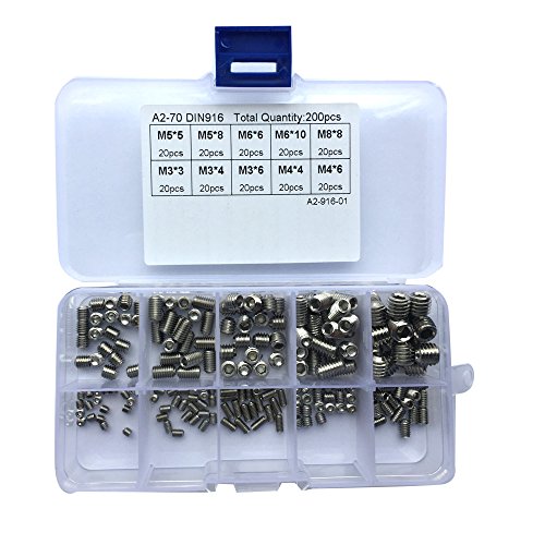 Shrxy 200pcs 304 Stainless Steel M3 M4 M5 M6 M8 Small Machine Screws SAE Hex Head Set Screw Hex Allen Head Socket Set Screw Assortment Kit with Case