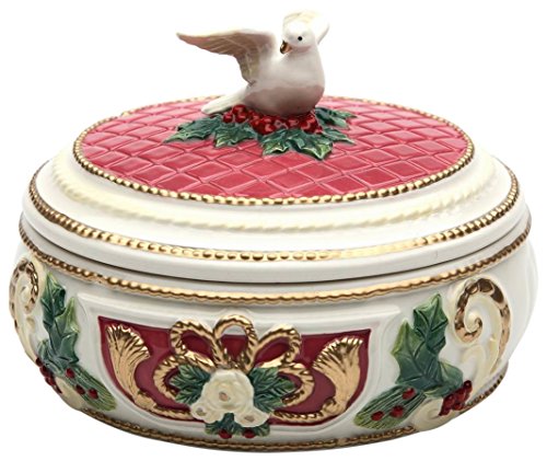 StealStreet SS-CG-10681 6.25" Porcelain Holiday Candy Box with Painted White Dove Top