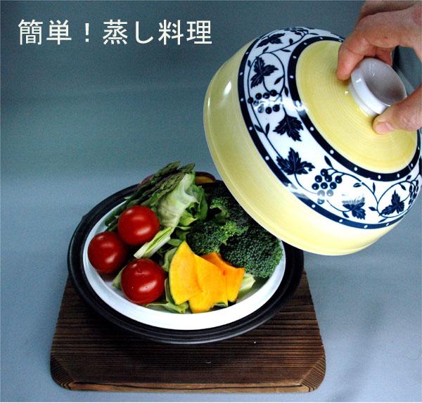 話題のタジン鍋が、さらに使いやすくなって新登場。蒸す・焼く・煮るはもちろん、本格セイロ蒸しもできて、料理の幅が広がります。製造国:日本 商品サイズ:21×21×12.5cm 素材・材質:耐熱セラミック、磁器(有田焼) 仕様/容量:700cc、電子レンジ・直火・オーブン・食器洗浄機:使用可能IH調理器:使用不可 付属品:専用すのこ ※サプライヤー直送品 ご注文後2~3営業日後の出荷となります【商品名】ID-16 ドーム型せいろタジン鍋(小) オリエンタル 01オリエンタルフルーツ