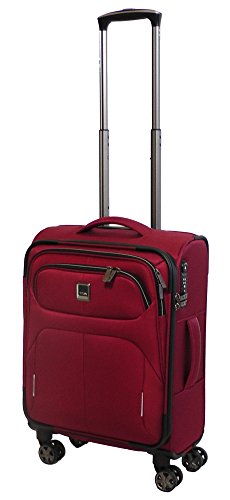 -. Feature : Titan Soft Spinner International Carryon Designed and engineered in Germany / Hand Luggage Size 22" x15" x 8" with Smart Sleeve to Attach to Large Luggage / Recessed TSA lock, Water repellent zippers on Main compartment / 2 Big Zippered front pockets, 4 Smooth and silent double running wheels / Tear Resistant polyester 5 year warranty Weight 5.7lbs !!