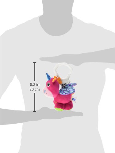 The whimsical unicorn comes to life with flapping wings as it dances and wiggles when pulled. Watch as baby is delighted and engaged by the moving character. The c-clip offers easy attachment to prams, strollers and in the car, making it the perfect travel companion.Feature
