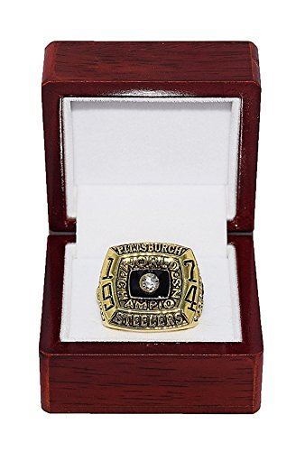 PITTSBURGH STEELERS (Super Bowl IX) 1974 SUPER BOWL WORLD CHAMPIONS Vintage Rare & Collectible High-Quality Replica NFL Football Gold Championship Ring with Cherrywood Display Box