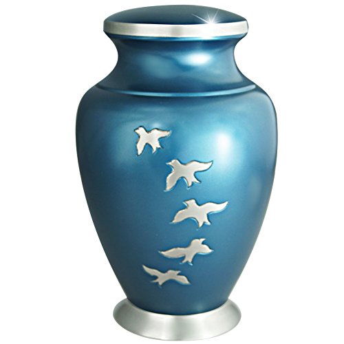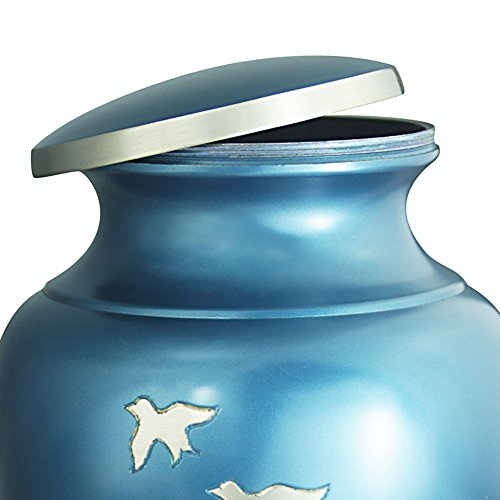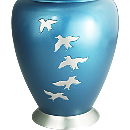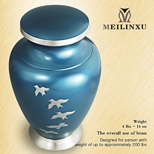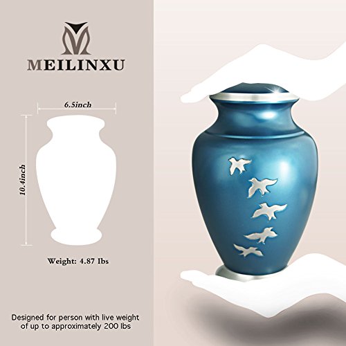 New Style:☛ The Aria Birds urn has a design in Blue with hand-engraved decorations with Flying free. urn is made from solid metal and the perfect lacquer coat to preserve its brilliance. ★ We also offer matching keepsake urn that fits approximately 3 cubic inches, You can find all our products on Amazon simply by searching for "Meilinxu Memorials Urns".★