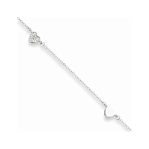 -. Title : Sterling Silver 9 + 1in Ext Polished & Cz Hearts Anklet