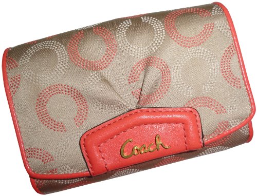 COACH WOMEN'S ASHLEY SIGNATURE DOTTED OP ART COMPACT CLUTCH WALLET KHAKI/TEAROSE