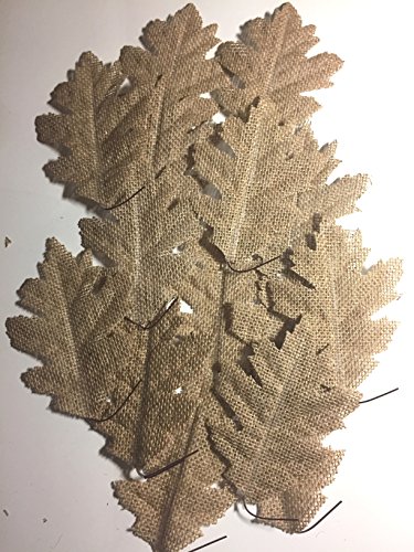- 16 piece package of burlap leaves supported with wire. Shapes seem to be oak or maple.