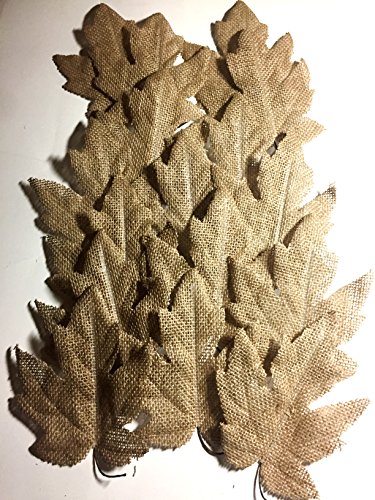 Tan Burlap Leaves with Wire Stem, Maple & Oak,16 pcs, Garlands, Wreaths, Bouquets, Fall Arrangements, Country Wedding decor, Candle rings, swags, gift embellish, banners, gift bags