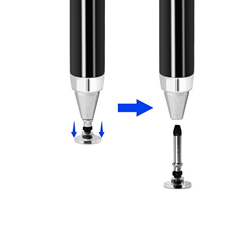 -. Feature : Disk tip technology allows stylus to write with precision, like a real pen on your tablet or phone / The plastic disk tip is retractable; this protects the disk from damage during travel / Compatible with any touchscreen phone or tablet / Plastic disk glides effortlessly across your touchscreen device at an angle or uP.R.Ight; taps and toggles with ease / Note: Do not remove the plastic disk unless you are replacing it; the disk remains on the stylus during use. If a replacement tip is needed, they are available and are sold separately on this product page; Amazon #B015F1DZFK