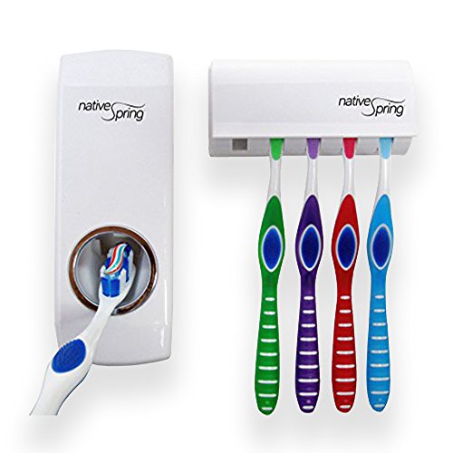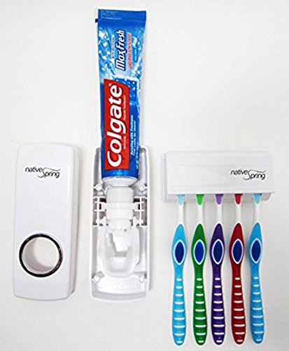 Native Spring Toothpaste Dispenser and Toothbrush Holder White