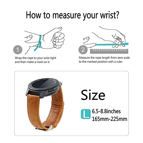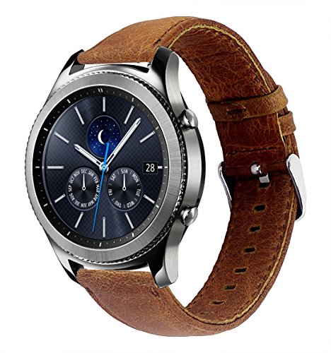KADES Genuine Leather Retro Cowhide Smart Watch Band with quick release pin for Samsung Gear S3 Classic and Gear S3 Frontier (Large,Brown)