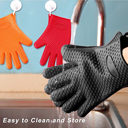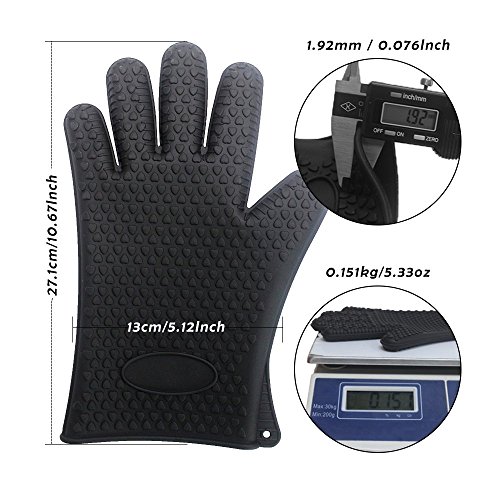 No-slip and Comfortable Operation Design - Entire palm-side surface of the grill glove is covered in raised, no-slip nubs to help you maintain a confident grip.And the gloves with large interior size and soft material specially designed for comfortable operation will sure be your favourite gadget in your kitchen.